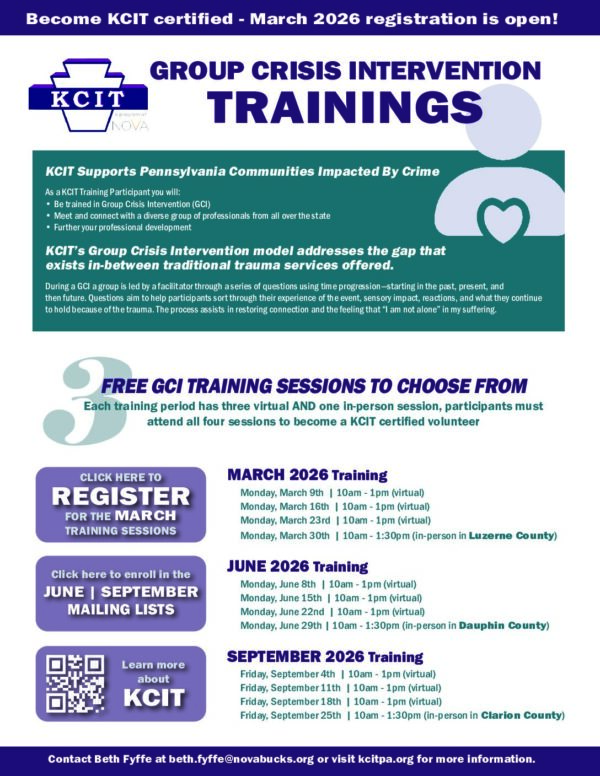 - Be professionally trained in Group Crisis Intervention (GCI) for mass trauma